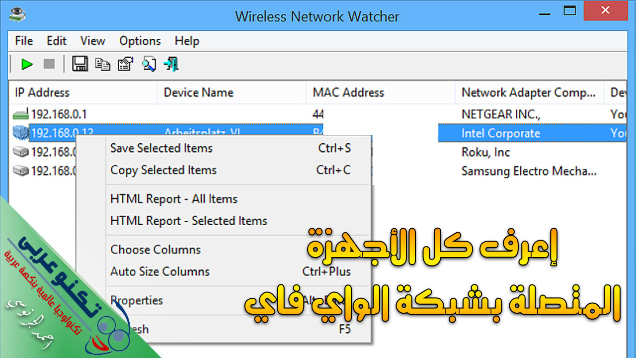تحميل برنامج wireless network watcher لمراقبة شبكة الواي فاي