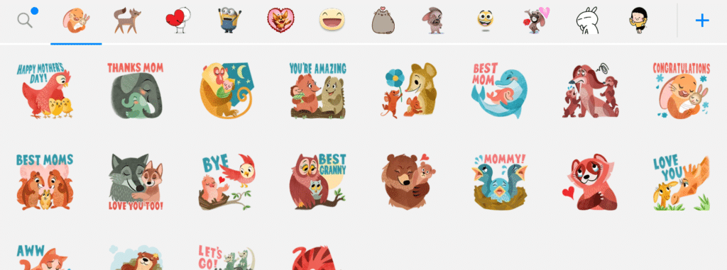 وإلى جانب الزهرة البنفسجية، أطلقت فيس بوك مجموعة من الملصقات لتطبيق التراسل مسنجر بعنوان “أمي حبيبتي” يظهر فيها العديد من الحيوانات مع صغارهم.