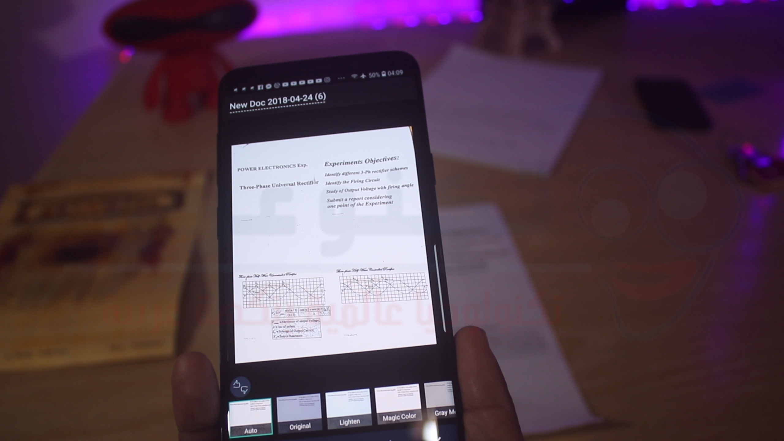يقوم برنامج CamScanner بمعالجة الصورة المُلتقطة سواء كانت تحتوي على نصوص أو صور متنوعة وقبل حفظها يمكنك إضافة مختلفة داخل التطبيق لمعرفة ما إذا كانت تبدو أفضل أم لا؛ إعتماداً على نوعية الضوء في الصورة.