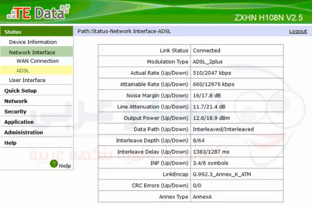معرفة سرعة الإنترنت الحقيقية وجودة خط الإنترنت ADSL من خلال الراوتر